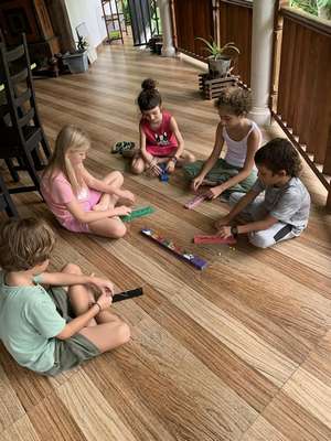 Un long week-end en perspective ! C’est l’occasion pour nous d’organiser deux après-midi “YAPUKA” et d’accueillir de nombreux enfants à venir créer et jouer avec nous ! Initiation au macramé pour commencer, puis tir à l’arc, jeux de société, jeux de ballon… un petit goûter et même une soirée ciné ! Deux belles journées pour s’amuser ! On adore ces moments-là, et Jade et à Léon sont heureux d’être entourés de copains. Ils rient aux éclats, ils inventent des secrets, ils créent des amitiés ! Ils découvrent aussi quelques situations inattendues ! Comme la tricherie au cours d’un jeu, celui qui veut toujours passer devant les autres, celui qui est mauvais joueur !